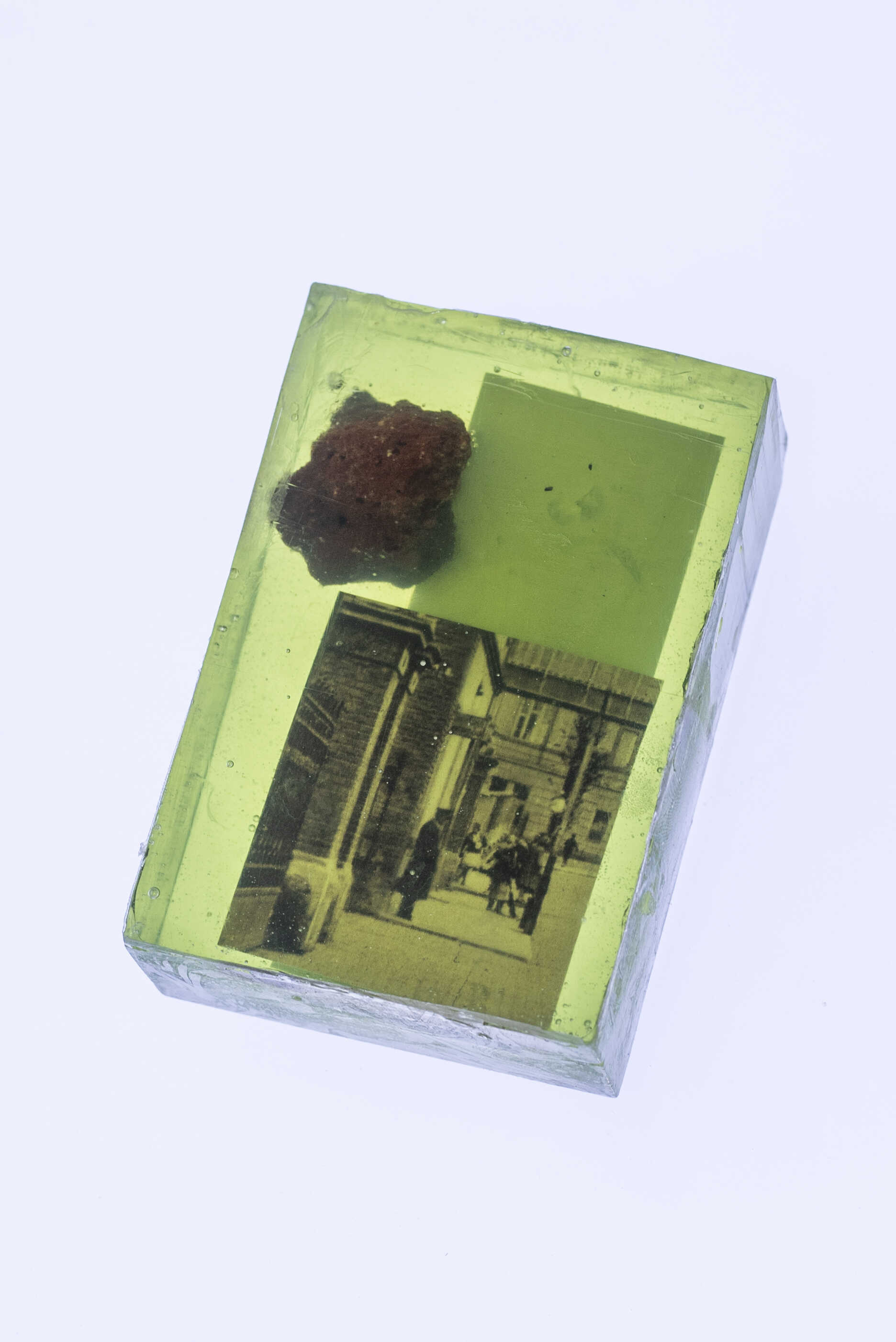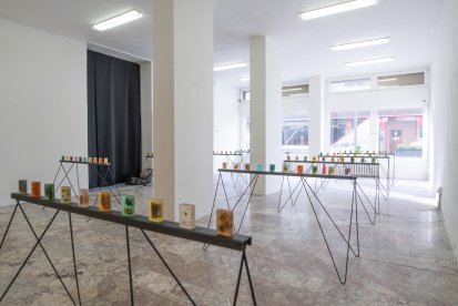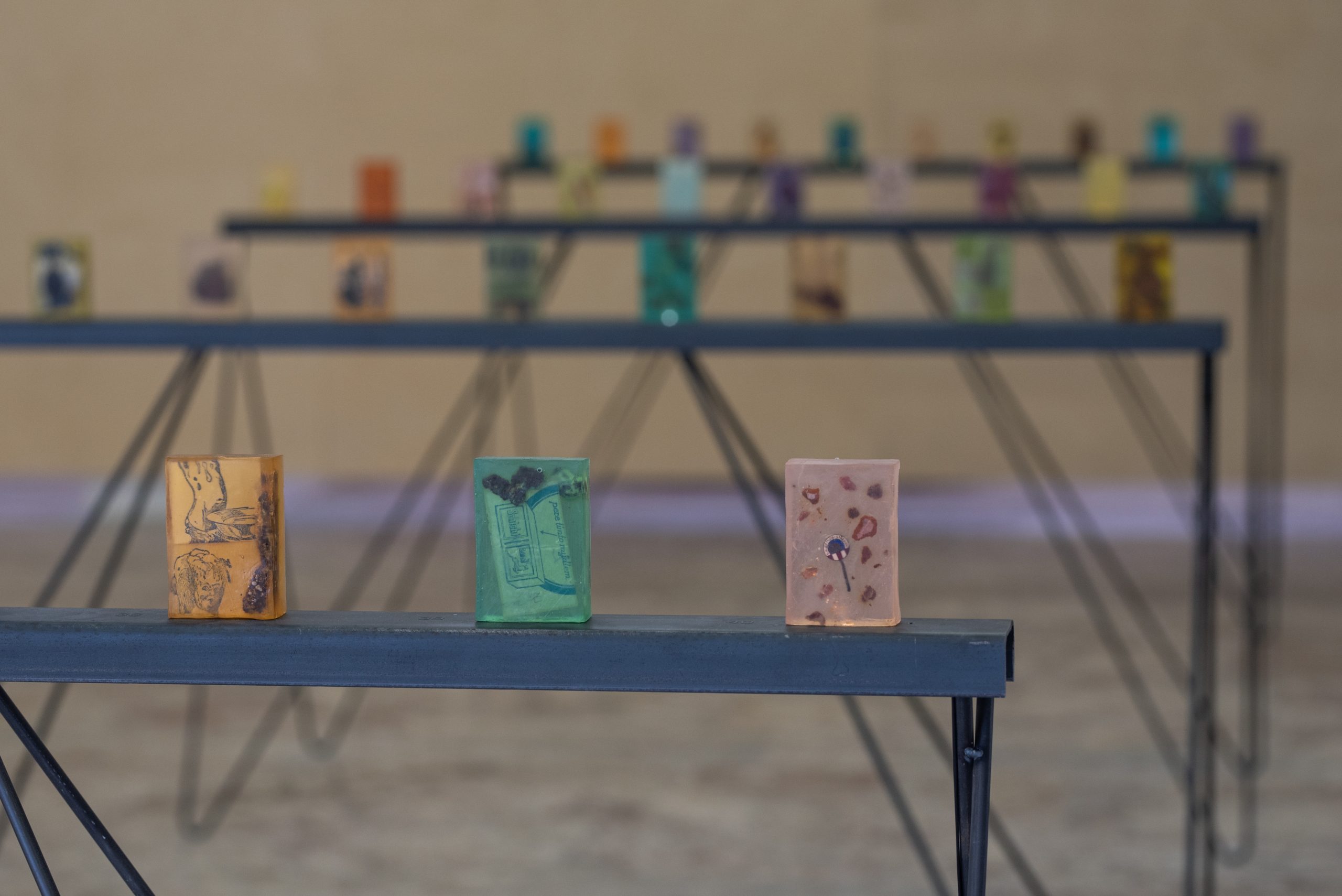 Továrna na Střekově přes sto let ovlivňuje strukturu města i kvalitu života jeho obyvatel s pozitivními i negativními dopady. V době průmyslového rozvoje a se zásadní změnou pracovních podmínek zakladatel průmyslník Johann Schicht a jeho potomci vybudovali ve městě občanskou vybavenost – polikliniku, lázně, jesle, knihovnu a pro své pracovníky i obytné domy. Po zestátnění podniku výroba pokračovala a nadále zaměstnávala velké množství nově usazeného obyvatelstva. I národní podnik Setuza spolčoval své zaměstnance a umožňoval jim realizovat „nadstavbu“, a to především při akcích Revolučního odborového hnutí, pod které spadala organizace oslav Mezinárodního dne žen, mikulášských nadílek nebo dětských táborů. ROH však zajišťovalo a schvalovalo např. i provoz amatérského divadelního spolku Severotuk, později úspěšného Malého divadla. Po privatizaci podniku v 90. letech minulého století provoz postupně zanikal, přesto donedávna do města vnášel ekologickou zátěž projevující se především zhoršenou kvalitou ovzduší. Průmyslová výroba ovocných šťáv, mýdel, zubních past a jedlých tuků ovšem dalekosáhle přesahuje hranice města. Jádrový olej, který je jednou z hlavních složek hygienických produktů, se do Ústí nad Labem dovážel především přes Holandsko z kolonizovaných zemí. Pěstování základní suroviny má za následek ekonomické, ekologické a především sociální katastrofy globálního významu. Na pozadí politických a technologických změn a zanikající výroby se proto v současné době navracíme k přemýšlení o ekologické udržitelnosti, domácí ekonomice i celkovému dopadu průmyslové výroby na podobu společnosti. Tyto okolnosti umělkyně Ana de Almeida sleduje na výstavě Z tuku a města. Pracuje s archivním materiálem spojeným s průmyslovým závodem, ovšem adjustovaným do signifikantních artefaktů – ručně vyráběných mýdel.