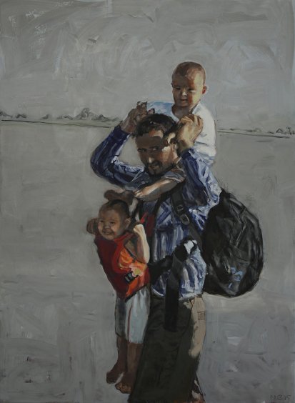 Maďarský umělec Csaba Nemes (1966) se dlouhodobě věnuje médiu malby, v rámci kterého prozkoumává různorodé zobrazovací kánony a technické i estetické přístupy, ale především se soustředěně zabývá hledáním nových možností komunikace mezi tradičním závěsným obrazem a aktuálním politickým a společenským kontextem.
