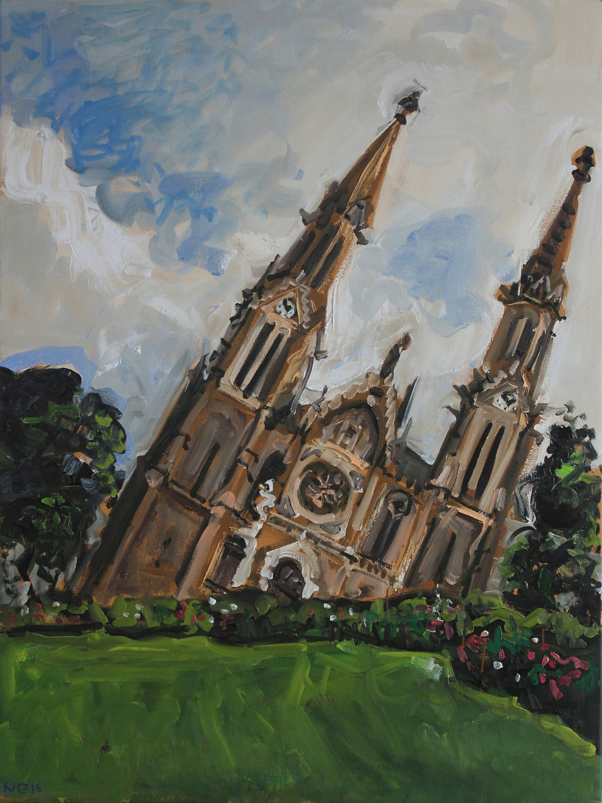 Metaforickým uzavřením autorova subjektivního raportu o soumraku našich snů a iluzí o uspořádání světa otevřeném polyfonii hlasů všech jeho účastníků, je řada obrazů hroutících se kostelů, která zároveň poskytla jméno celé výstavě (Pád, 2016). Je přitom zřejmé, že autor zde vznáší palčivou otázku o samotné podstatě naší kultury a o destruktivních procesech, které ji ohrožují a paradoxně více než z vnějšího prostředí vyrůstají přímo z našich selhání a nejistot.