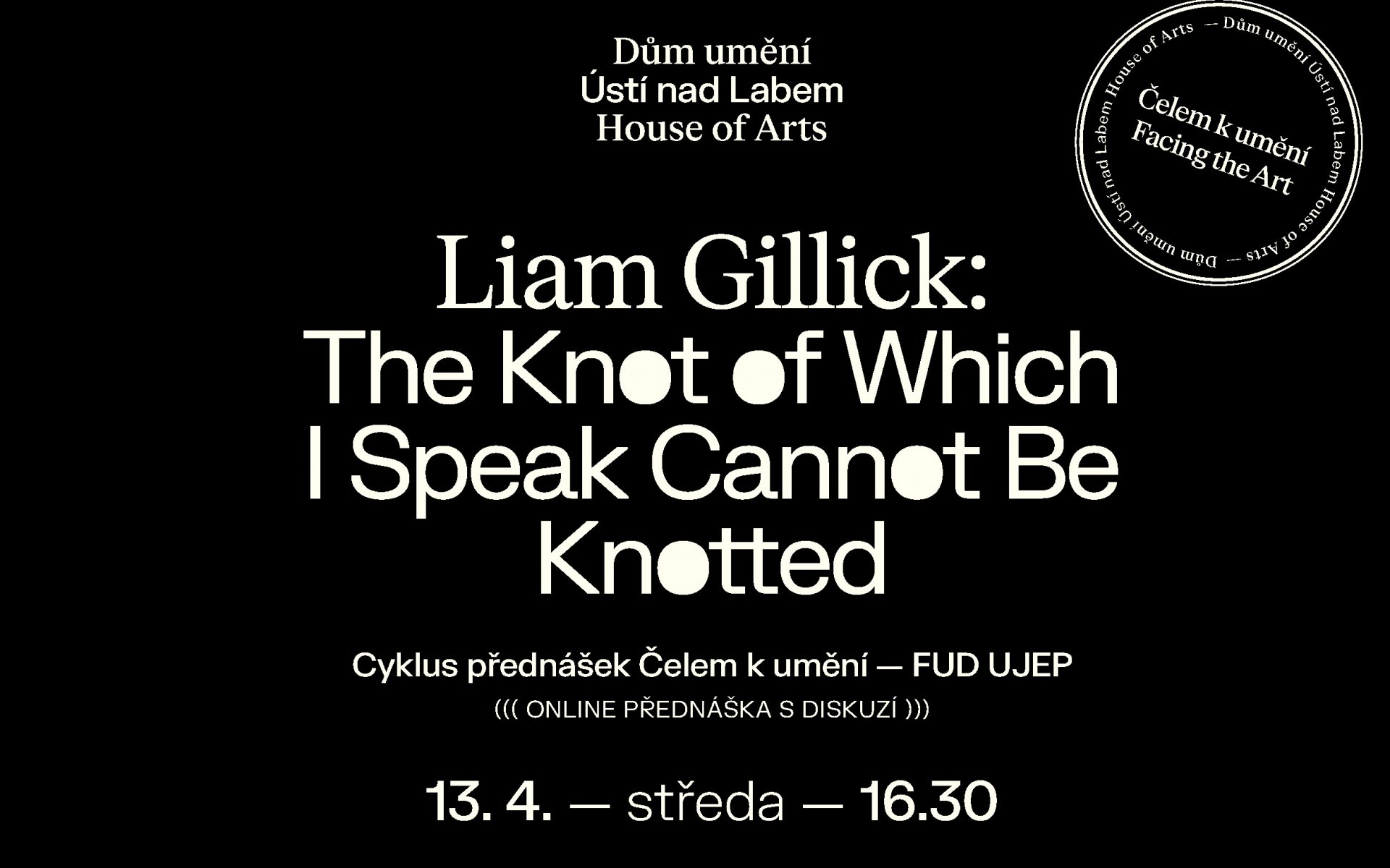 Liam Gillick bude hovořit o třech výstavách, které odhalují různé přístupy k výstavě jakožto formě. První z nich je Gillickova “ne” retrospektiva z období středu jeho kariéry v Curychu, Rotterdamu, Chicagu a Mnichově. Dále výstavy „Okayama Art Summit” a „The Work Life Effect“ z Gwangju v Koreji. Po přednášce bude prostor pro dotazy publika.