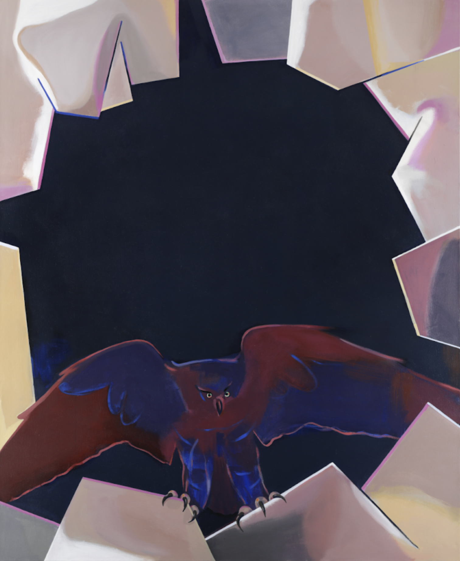 Odkazy na minulost hluboce zaseknutou v ústeckých rýhách ovšem tvoří pouze iniciační koncept výstavy prolínající se s událostmi aktuálně prožívanými. V prezentované kolekci uvozené několika juvenilními obrazy, které autor vytvořil právě v Ústí nad Labem, a také drobným konvolutem fotografií Lukáše Jasanského a Martina Poláka „dokumentujících“ Mertovy ústecké reálie, se tedy potkávají díla inspirovaná rodinným zázemím, environmentálními obavami a v neposlední řadě aktuálním ruským válečným běsněním na Ukrajině. I když se novější konflikty