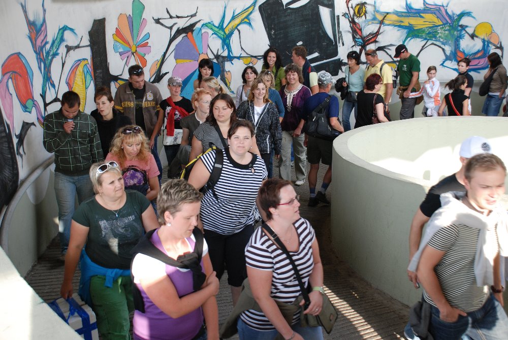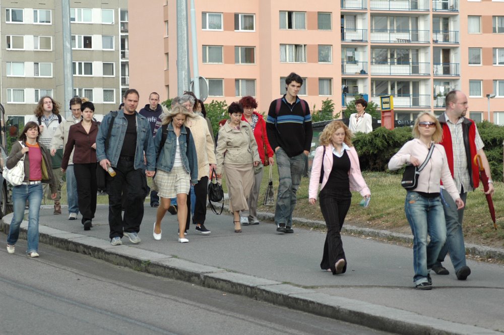 Dlouhý pás fotografií v knize „Poutníci” zachycuje opuštěná místa sídliště, kde se jen občas objeví osamocený poutník pomalu kráčející prázdnými pláněmi. Autorka zvolila formát leporela, který vytváří iluzivní obrazový příběh o místních obyvatelích.