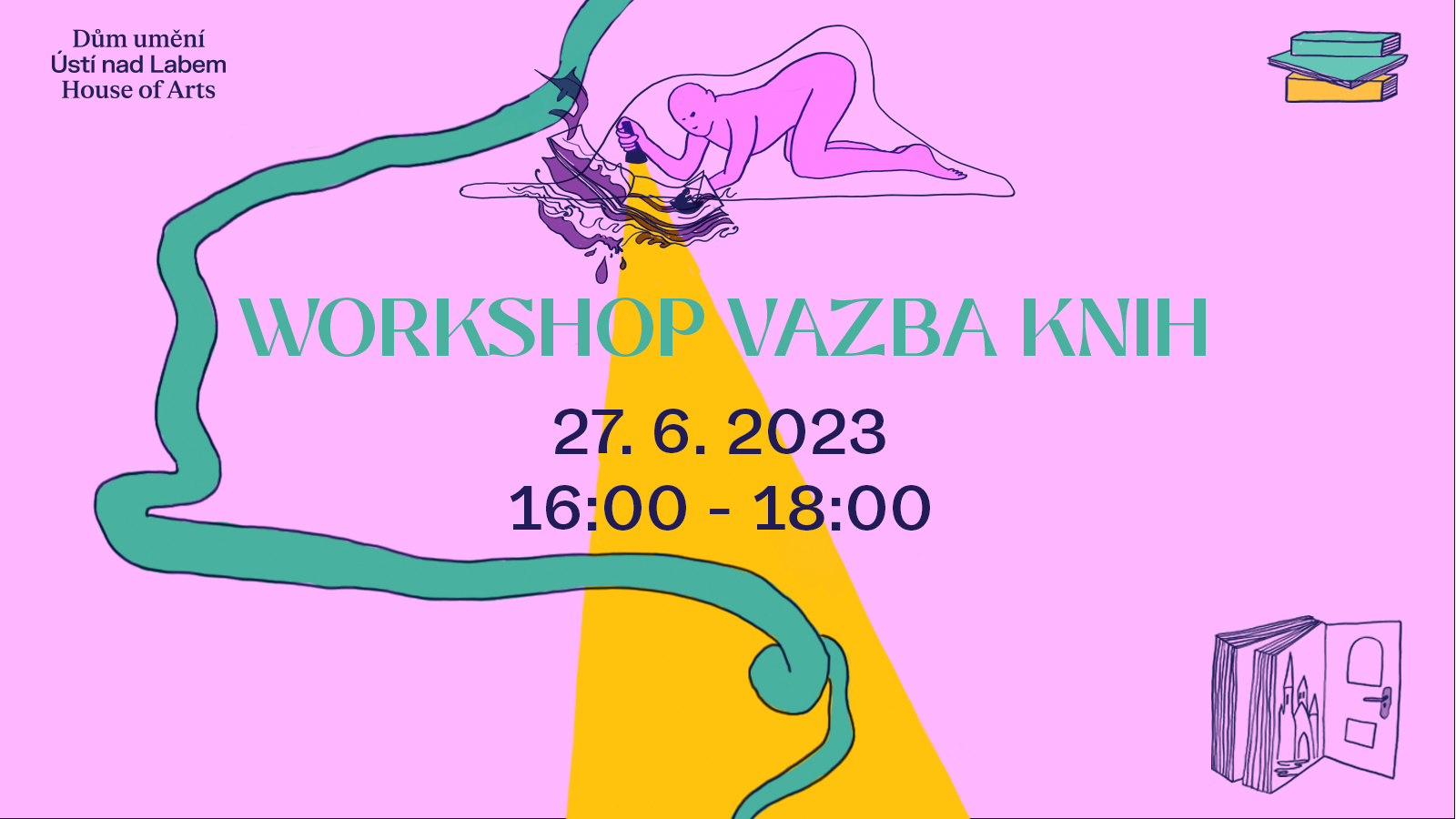 Vazba knih s Anetou Bendákovou Pod vedením ilustrátorky Anety Bendákové se uskuteční knihařský workshop koptské vazby. Nutná rezervace na mailu duul@ujep.cz, kapacita omezena. 27. 6. 2023 úterý 16:00 – 18:00 Vstupné: Vstupné dobrovolné